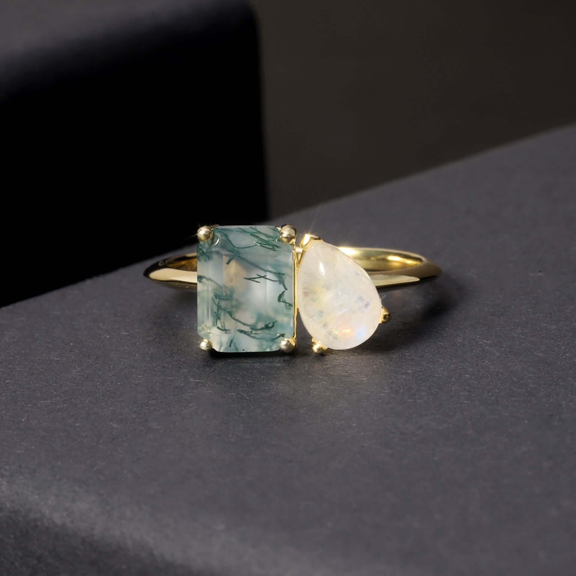 925 Silver Moss Agate Drop Shaped Ring