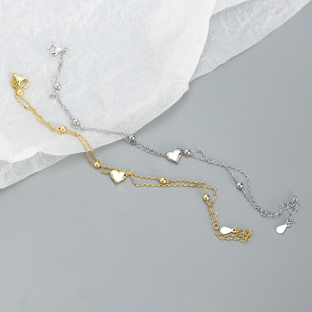 S925 Silver Heart Shape Double Layer Bracelet
